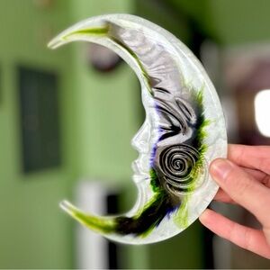 Whimsigoth Encased Feather In Resin Celestial Boho Crescent Moon Accent Art