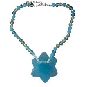 Artisan Beaded Necklace with Carved Blue Flower & Heart Charm