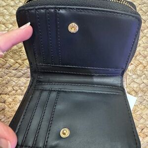 Stylish black wallet by Anne Klein. Features a sleek curved design.