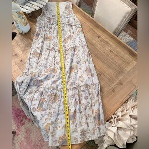 Rachel Zoe sleeveless light weight & breezy boho floral print maxi dress with v-neck and tiered ruffles. Fully lined. Off white, blue/purple, cream/yellow & peach color way. See fabric close-up. Perfect with sandals &/or a denim jacket. See photos for measurements. Smoke free home.