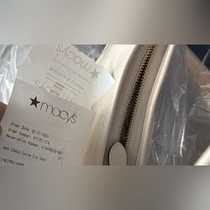 The Curve Zip Bag by COACH in โขchalkโ white is crafted of soft glovetanned leather and features a wide strap that sits comfortably on your shoulder