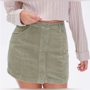 Forever 21 Woman’s 100% Cotton Sage Green Corduroy Mini Skirt w/Buttons-Large