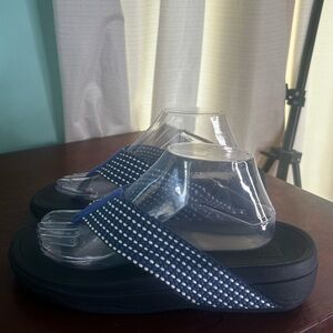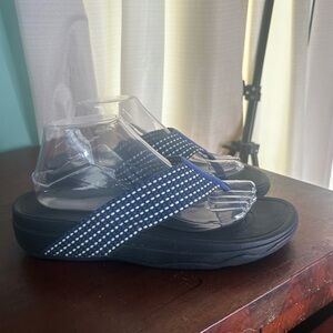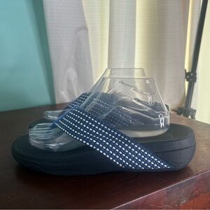 Fitflop Womens 10 Surfa Toe Posts Wedge Sandal Blue White Comfy Casual Flip Flop