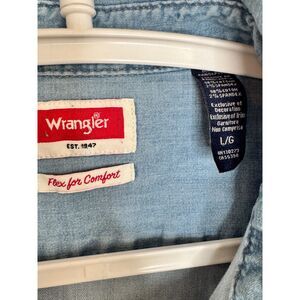 Wrangler Men’s Light Wash Western Casual Denim Button-Up Shirt Size L