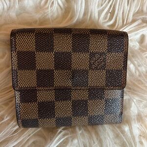 Louis Vuitton Damier Ebene Wallet with Gold Button-Pristine