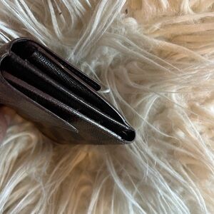 Elegant LV Damier design. Features a gold button closure. Compact and stylish.
