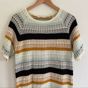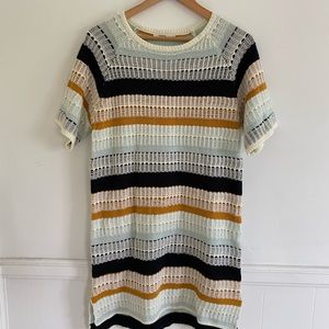 Tularosa Maci Raglan Short Sleeve Navy/Mustard/Ivory Stripe Knit Dress. Size S
