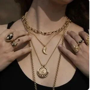 Elegant gold amulet pendant featuring a she-wolf claw design. Perfect for adding a touch of sophistication to any outfit.