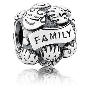 PANDORA Love & Family Charm Authentic Sterling Silver Smiling Faces Engraved