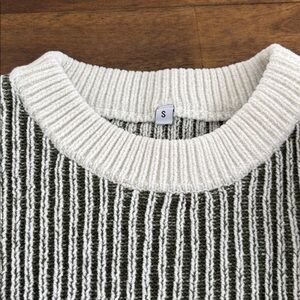 Stay cozy and stylish with this striped crew neck sweater. Featuring a chic green and cream design, it's perfect for any casual outing. A dupe for the Aerie sweater!