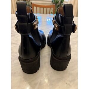Steve Madden Amulet Black Leather Lug Sole Gem Strap Ankle Boots Size 9