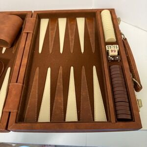 Vintage Leather Backgammon Game Set Brown 2 Player Portable Travel Case