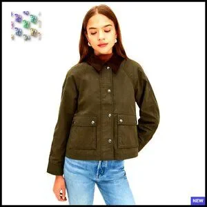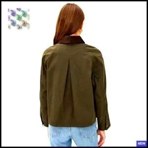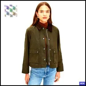Waxed Canvas Barn Jacket Zip Front Corduroy Trim Classic Preppy Outerwear