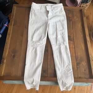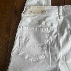 NWT American Eagle Outfitters Next Level Stretch High Rise White Leggings - white out destroyed style - size 10, tiny mark as shown