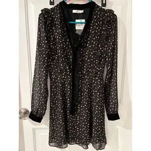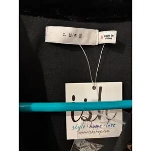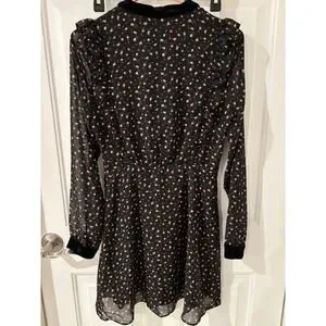 LUSH Black Floral Velvet Trim Long Sheer Sleeve Mini Dress Size S Party