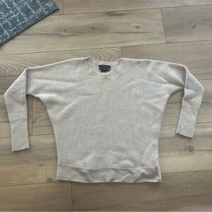 Item Features: Light beige extra-fine merino wool sweater with a soft, lightweight knit and a relaxed, slightly draped silhouette. Designed with a wide crew neckline, ribbed cuffs and hem, and breathable natural fibers for comfortable layering. This style tends to run a bit small.