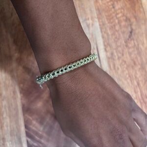Stylish gold-tone bracelet with intricate design. Complements any outfit.