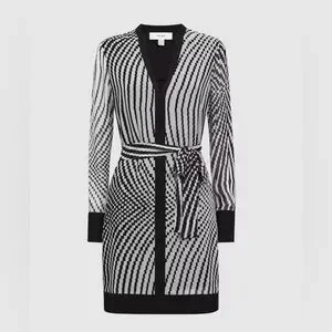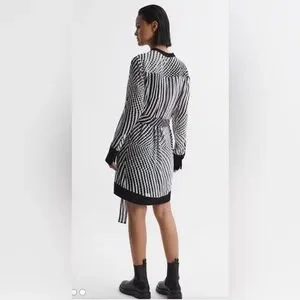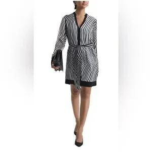 Reiss Tia Black and White Striped Mini Dress NWT