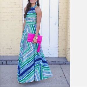 Eliza J Scarf Bow Tie Maxi Dress Fit & Flare in Green Size 4