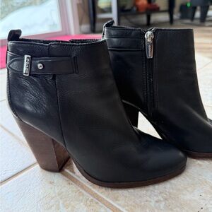 Coach Hewes Black Leather Block Heel Ankle Bootie