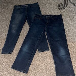 Stylish dark blue denim jeans. Perfect for casual wear. I am downsizing my personal items so I have a few bundles coming up of size 10–12 jeans, bundling by size and weight. I have a pair of Lucky brand size 12/31 and a pair of J.Crew vintage cropped size 31 here