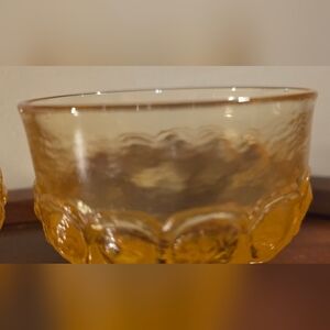 Vintage 1970s Tiffin Franciscan Madeira Cornsilk Yellow Glass Drinkware (4 Pieces). Mid Century Mod Lovers!!! Stunning set of 4 CHAMPAGNE/SHERBERT GOBLETS. Tiffin Franciscan Madeira Cornsilk Yellow Glassware. Perfect for adding a touch of festive sophistication to any table setting during holiday gatherings. Excellent used condition. No chips. No scratches. No cracks. See pics for measurements.