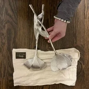 Michael Aram Silver Tulip Serving Utensils with Cream Pouch