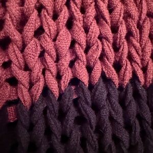 Chunky knit sweater with bold black stripe. Ideal for layering.