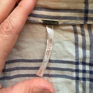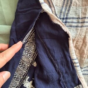 Free People "Behind the Flannel" button-down shirt with a pink plaid front and a blue bandana-print back pane. Has pockets!! There’s a rip along the scene that could be easily sewn. Good condition, but worn.Size small