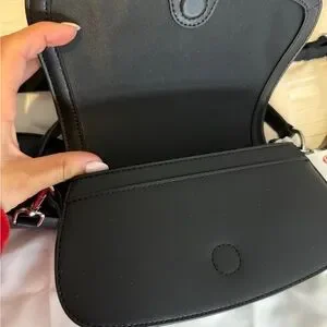 Sleek black crossbody bag. Features adjustable strap. Includes small pouch. Perfect for everyday use. Never worn in original dust bag!!!