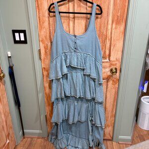 Anthropologie XL 1X Pilcro Soft Denim Ruffle Tiered Denim Maxi Dress Slit 2X
