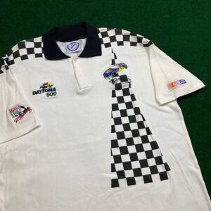 Vintage Nascar Polo Shirt Mens L White Black Kyle Petty 42 Mello Yello 90s USA