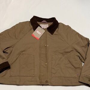Hunter Tan Barn Crop Jacket with Dark Brown Corduroy Collar S NWT