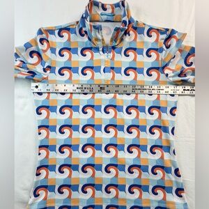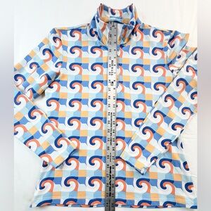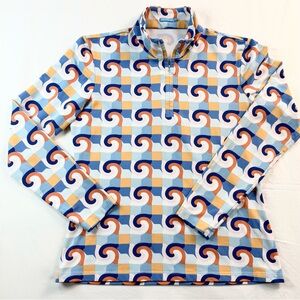 J. McLaughlin Blue Coral Deco Crest Quarter Zip Pullover Top Size Small