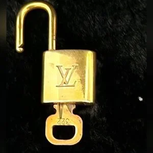 Luxurious Louis Vuitton 322 gold lock with key. Features iconic LV logo.