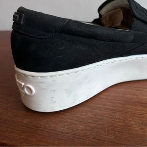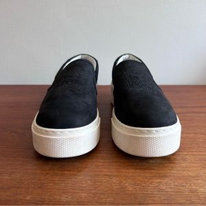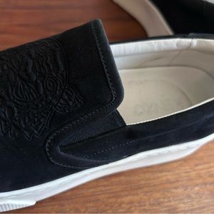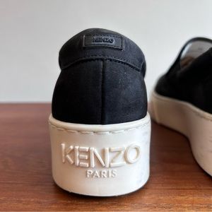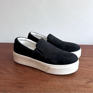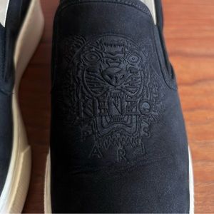 Chunky authentic KENZO slip on leather sneakers. Minimalist with a thick rubber sole, a nubuck upper with the Kenzo Tiger embossed on the upper side. Cushioned insole with cushioning around the ankle, fully leather lined.