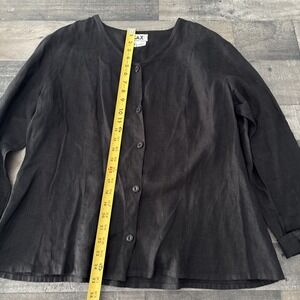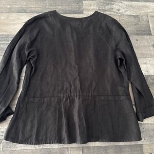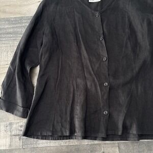 Flax Jeanne Engelhart Womens M Button front Shirt solid Black long slv linen