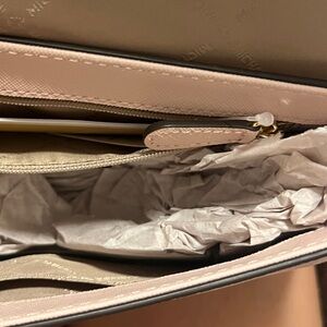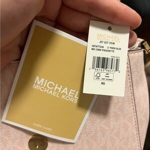 NWT, brand new, never used light pink Michael Kors crossbody bag. Super cute for easter 🐣 interior zipper & side pocket + removable crossbody strap so you use as a clutch too!