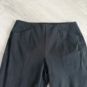 Chic black skinny pants. Ideal for versatile styling. Has a tummy control panel and front pockets. Stretchy, thick fabric.