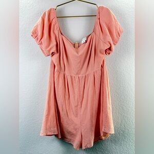 Chic Soul Peach Puff Sleeve Smocked Back Gauzy Gauze Romper 2X