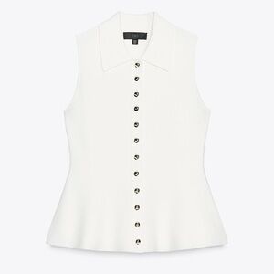 Zara Knit White Sleeveless Button-Up Blouse