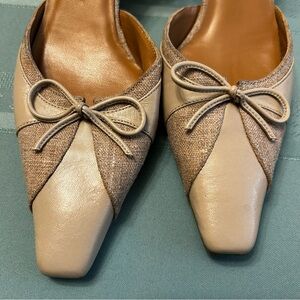 The Stuart Weitzman d’Orsay Kitten Heels in women’s size 5 feature a square toe and elegant bow detail, making them perfect for various occasions such as parties, formal events, and business meetings. These beige heels are crafted with leather lining, a synthetic outsole, and cushioned for comfort. With a mid-height kitten heel, these designer luxury shoes from Spain embody a timeless and sophisticated style that is sure to elevate any outfit.