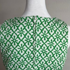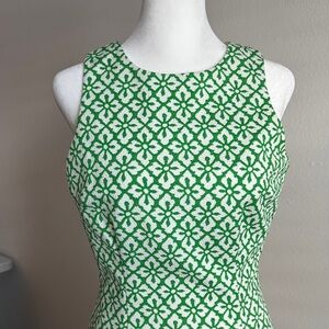 Chic sleeveless mini dress with a green and white pattern. Perfect for stylish outings.