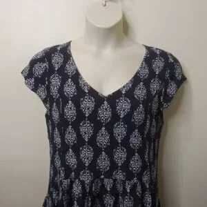 Like new, pretty navy and white lightweight floral dress with pockets, from Garnet Hill. Dress just slips over the head, and is completely lined. Great everyday dress for running errands, casual date, etc. Can be worn year round if worn with a cardigan and booties in colder weather. Bust measures 20, waist 19, hips 25, length 35 1/2 inches. Please see all photos.