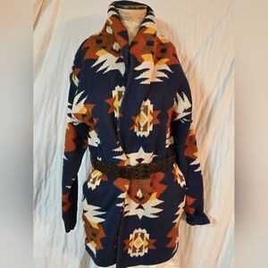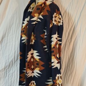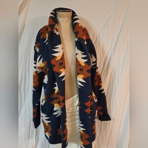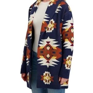 Lucky Brand Women's Southwest Shawl-Collar Navy Aztec Cardigan Size Xlarge