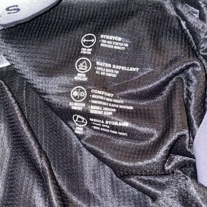 Two-way stretch, water-repellent fabric, breathable mesh pockets, durable elastic waistband, abrasion-resistant seams, and media storage pockets.