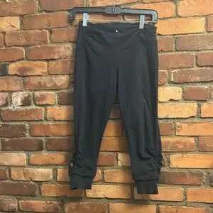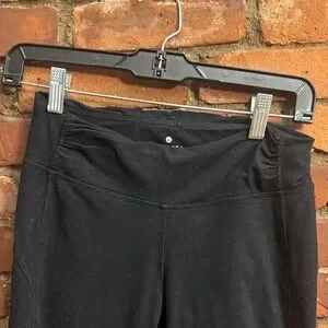 Stylish black cropped leggings with ruched details. Perfect for casual wear or workouts. Vintage/ y2k athleta. 95% organic cotton, 5% spandex. Other Athleta leggings in my closet, bundle and save!!