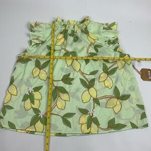 Ryegrass Lemon Print Ruffle Sleeve Top Size Large Green Yellow New NWT