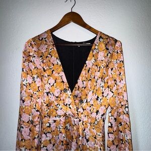 Size Small Chic long sleeve dress with vibrant floral pattern. Wrap style enhances silhouette. Ideal for versatile wear.
