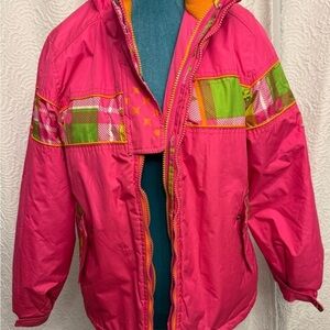 This eye-catching puffer jacket from Big Chill combines vibrant pink with striking green accents, offering a bold style statement. Designed for warmth and comfort, it features a high collar for added protection against the elements. Measurements On the jacket pit to pit is 20 1/2 inches from the shoulder of the jacket to the bottom is 24 inches from the shoulder to the bottom of the sleeve is 21 1/2 inches. there is no liner for this jacket.
